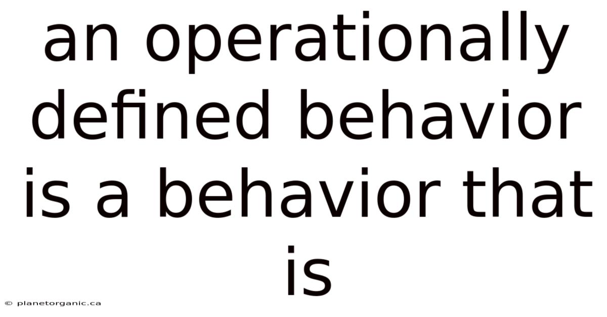 At the end of the day, an operationally defined behavior is a clearly defined and measurable description of a specific action. It is a critical tool for ensuring reliable data collection, accurate communication, effective interventions, objective evaluation, and scientific rigor in a variety of fields. By following the steps outlined in this article and avoiding common pitfalls, you can create strong operational definitions that will enhance your ability to observe, measure, and analyze behavior effectively. The precision offered by operationally defined behaviors ultimately leads to better understanding, more effective interventions, and more meaningful outcomes across diverse applications That's the part that actually makes a difference. And it works..
