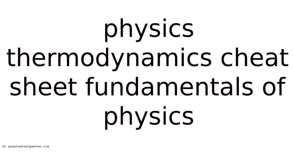 Physics Thermodynamics Cheat Sheet Fundamentals Of Physics