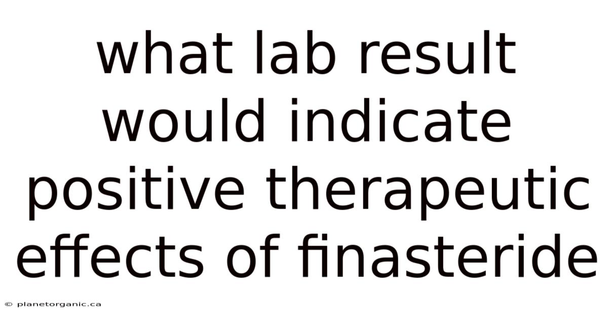 The primary lab result that indicates a positive therapeutic effect of finasteride is a reduction in serum DHT levels. That said, this needs to be interpreted in conjunction with other clinical assessments and patient-reported outcomes.